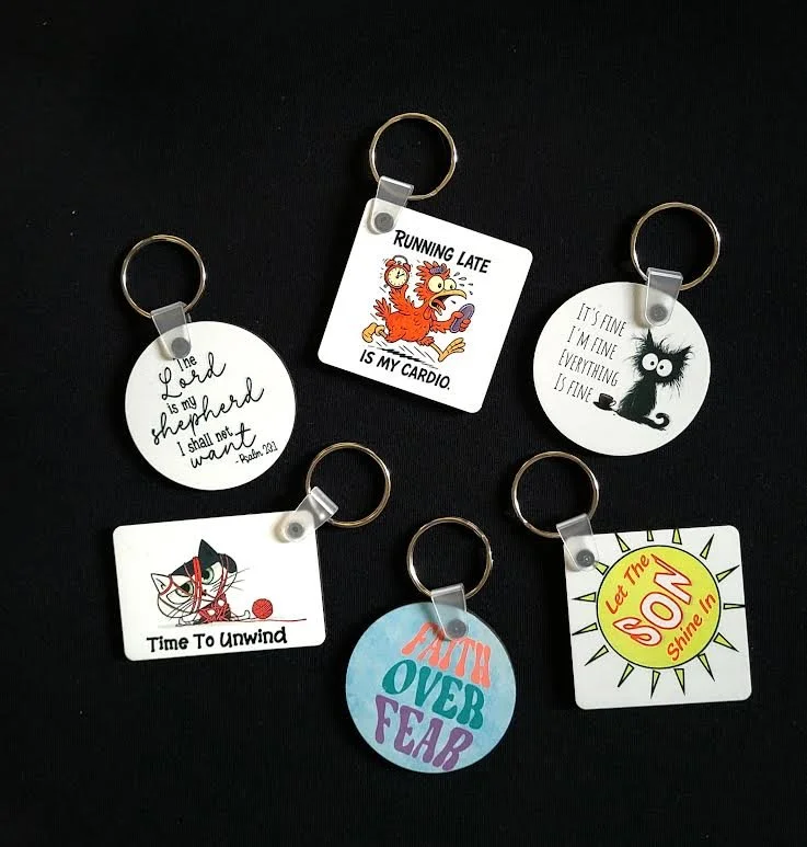 - Totes - Tumblers - Makeup Bags - Lip Balm Keychains - Bookmarks - Key Chains - Puzzles - Coasters - Magnets - Soda Cans - Mouse Pads - Keychains - Mugs -Christian Designs